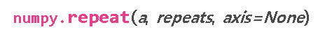 이중 a는 우리가 복사할 값, repeats는 몇번을 반복할것인지, 마지막으로 axis 는 복사를 할때 어떤 방향으로 할지를 의미합니다.