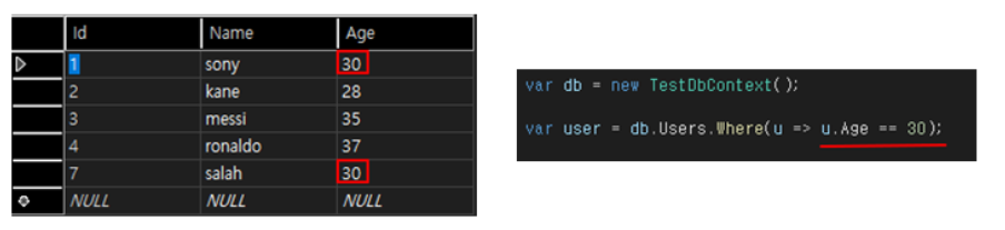 수정하고 싶은 프러퍼티가 Age임으로 .Age에 접근하여 값을 변경해주고, SaveChanges()를 적용해줍니다.