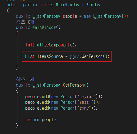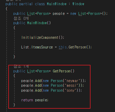 4) Person 객체를 담은 리스트를 xaml로 넘김